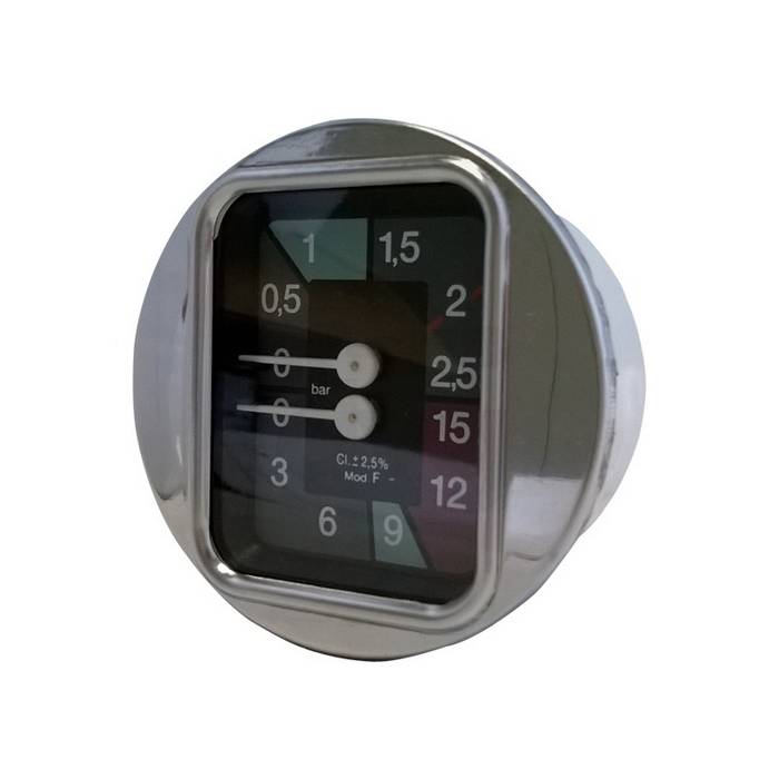 Dupla skálás, 0-2.5bar / 0-15bar. 1/8”M. DIA 63mm. Keret DIA 70mm. Megfelel még: BRASILIA